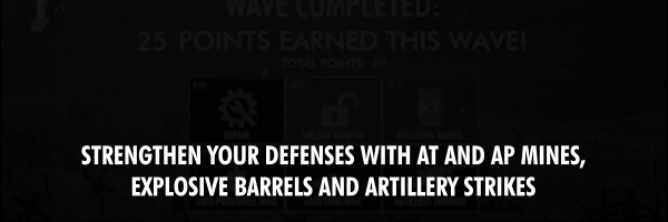 Strengthening your defenses with anti-personnel and anti-tank mines, explosive barrels, tank barriers and barbed wire.