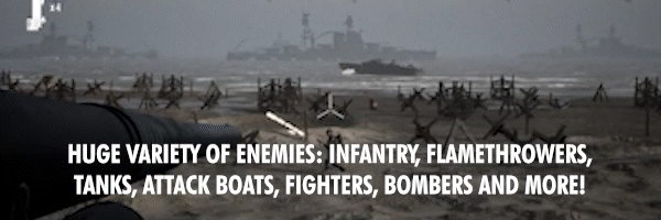 Huge variety of enemies, including marines, paratroopers, bazookas, flamethrowers, attack boats, jeeps, tanks, armored cars, halftraks, fighters, bombers and more!