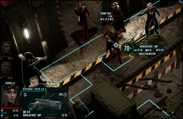 Combat is difficult. You’ll be outnumbered and outgunned, so you’ll have to figure out how to even the odds or avoid fights you can't win. There are 3 main factors determining the difficulty of any combat encounter and your character's life expectancy: Accuracy, Evasion, Damage (both dealt and taken). To succeed in combat, you must learn to control these factors.