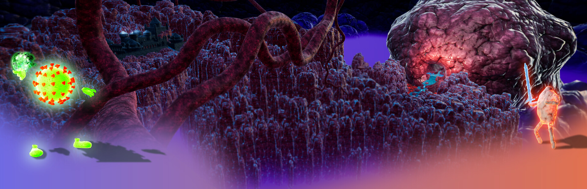 Explore inside the human body as a COVID-virus. A single player, action-adventure, indie game created by a doctor.